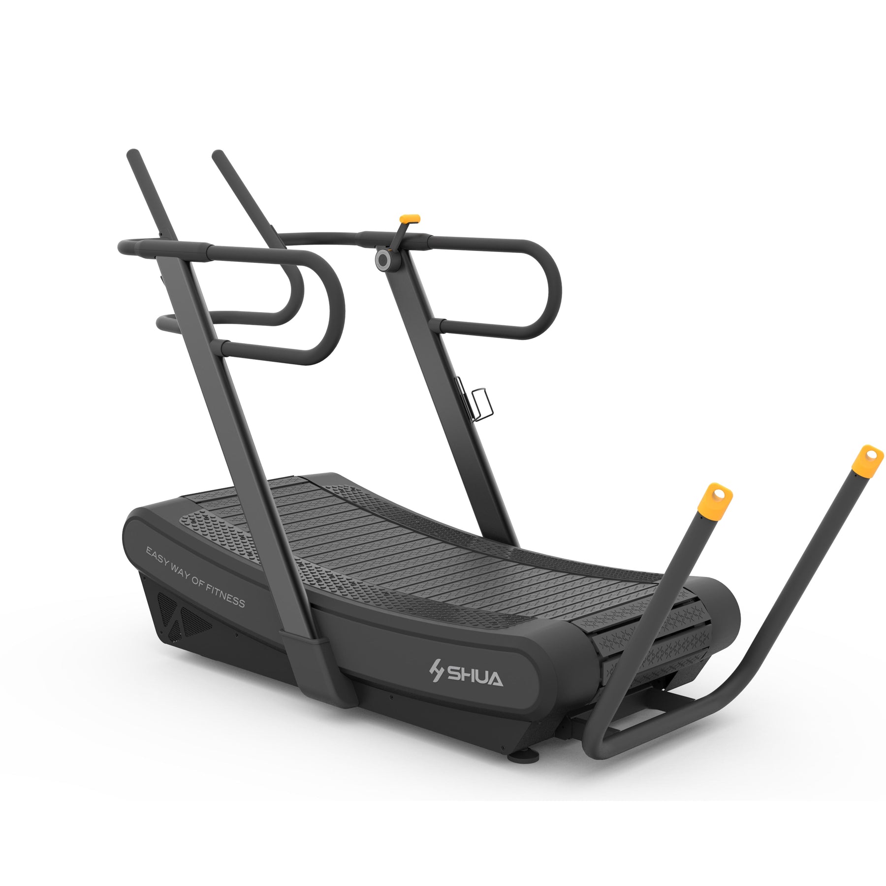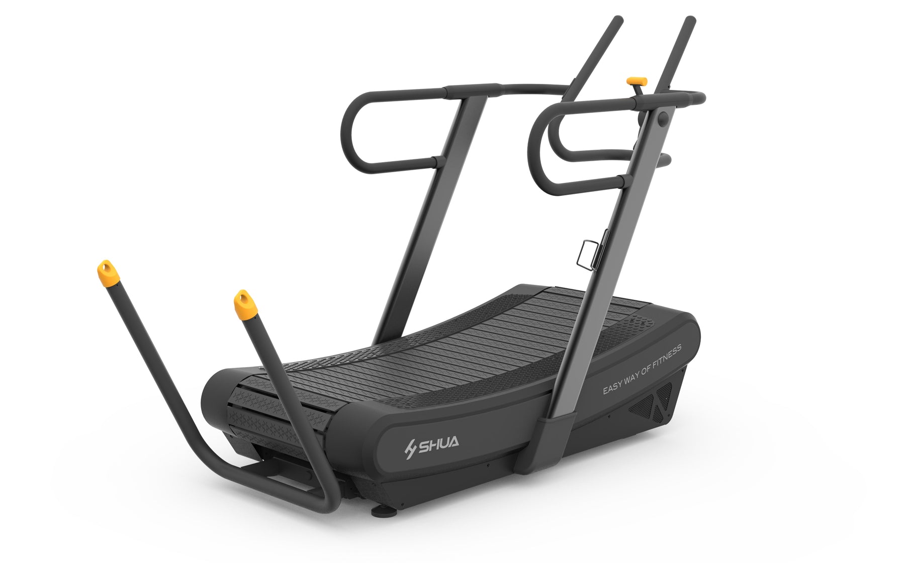 The Shua Curved treadmill is a premium option for any gym or training studio. This treadmill runs off the energy of the user and doesn't require any electrical consumption. SHUA are renowned for their aesthetic features and this treadmill is no exception.It has a gripped belt running surface, easy to use resistance arm crack and a slick LCD monitor display. Other features of this treadmill include: